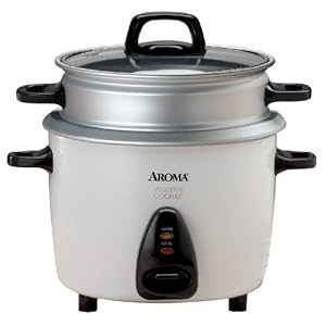 Take the guesswork out of making rice with this rice cooker and food steamer from Aroma. It cooks up to 14 cups of moist, fluffy rice and can simultaneously steam vegetables and meats for easy, all-in-one meals. It automatically switches to warming mode when cooking is finished, keeping food warm until ready to serve. Cook jambalayas, soups and even stews! The break-resistant tempered glass lid allows you to monitor rice without releasing steam, so your food is cooked to perfection every time. And the nonstick inner pot makes cleanup a breeze. Includes measuring cup, steam tray and serving spatula.