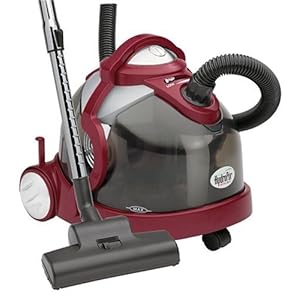 Ideal for allergy sufferers, or anyone concerned about a healthy indoor environment, this bagless vacuum cleaner features an exciting alternative to traditional vacuum-cleaner filters. The unit's unique water-based filtration system supplies two sponge filters that trap nearly 100-percent of the dust that passes through. Even more, its final filtration stage consists of a HEPA filter, which captures up to 99.97 percent of bacteria, dust, mold, and other airborne allergens, so only clean air gets expelled back into the home. The unit also provides a powerful 1200-watt motor, and its design keeps the main motor module completely separate from the water tank. Use the vacuum cleaner for everything from carpet in the bedrooms to tile, wood, and laminate flooring throughout the rest of the house. Other highlights include a variable power controller, a wet pick-up function, a 5-liter jumbo water tank, smooth-rolling wheels, an 8-inch flexible hose, and seven tools, including a crevice tool and an upholstery brush, for more detailed cleaning. Easy to operate and store, the compact vacuum cleaner measures 12 by 16 by 18 inches and carries a one-year limited warranty.
